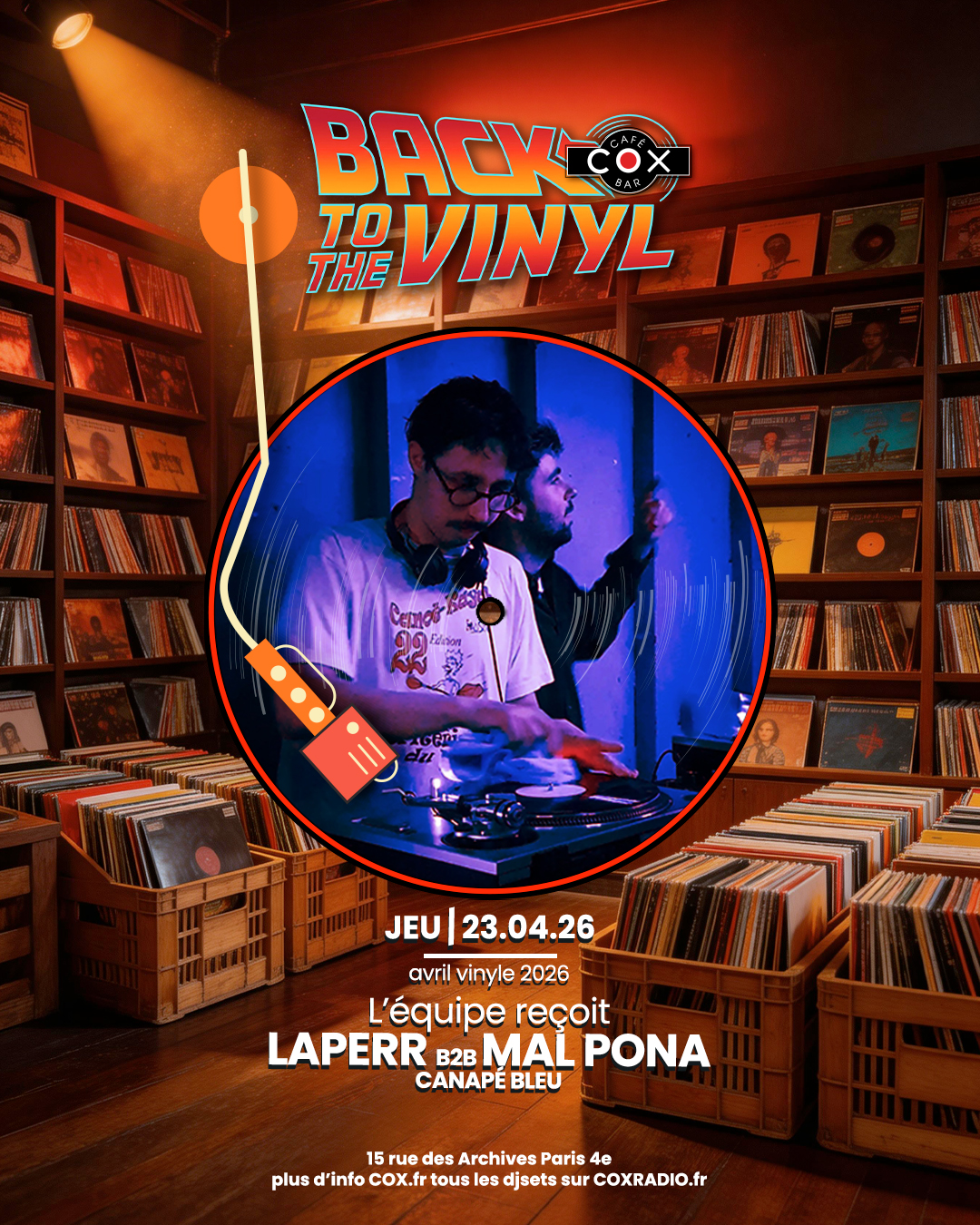 Amateurs de musique électronique depuis des années, Laperr et Maul Pona se rencontrent en école d’ingénieurs à Belleville. Ils mixent dans les soirées étudiantes et, en dernière année, se prennent de passion pour le format physique. Ils épluchent les bacs des disquaires parisiens et font leurs classes à l’open platine du Discobar dans le 19ème. Aujourd’hui diplômés, ils ont fondés avec d’autres amis Canapé Bleu, petit collectif qui tourne dans les bars de l’est parisien. Fort d’une grande collection de disques à eux deux naviguant entre micro house et disco, ils prépareront un set spécial deep & house pour leur première au COX !